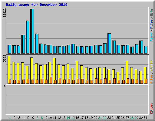 | Day | Hits | Files | Pages | Visits | Sites | KBytes | ||||||